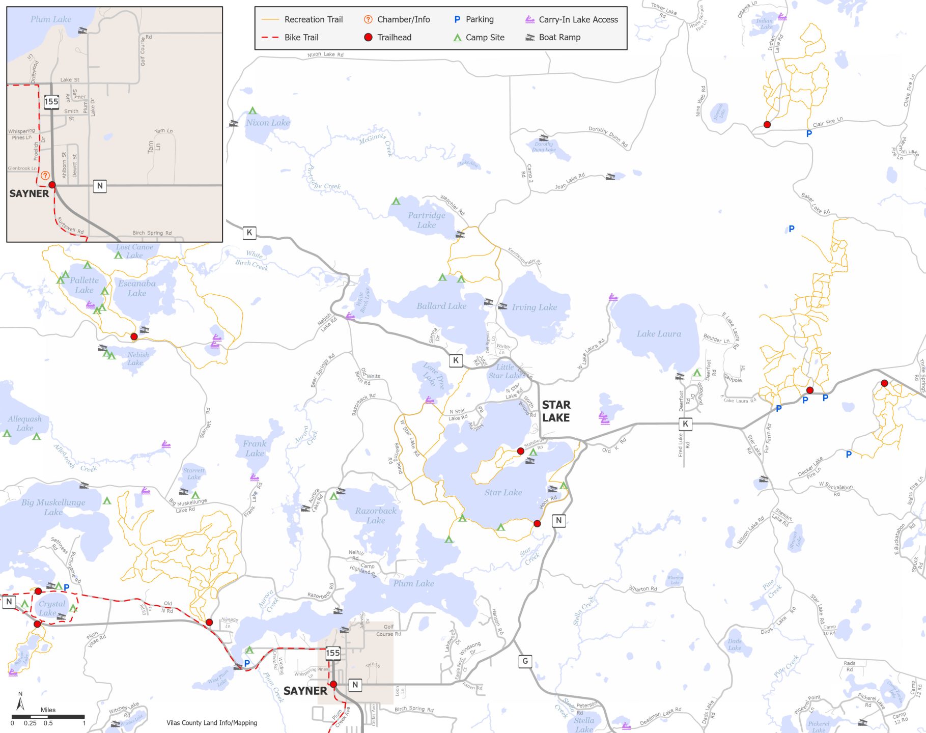Rustic Road 60 is considered one of the state’s most beautiful drives and it passes right through Star Lake. It’s a lightly-traveled route that follows CTH K between CTH N just east of Star Lake winding 11 miles to CTH M northwest of Star Lake. The route passes old logging camps, hiking trailheads, various lakes and an old saw mill in Star Lake.